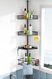 HAMITOR Corner Shower Caddy Tension Pole: Quick Installation 4-Tier Rustproof Bathroom Organizer Shelves for Bathtub Shampoo Storage - 47-121 inch Adjustable Floor Standing Bath Rack Holder - Black